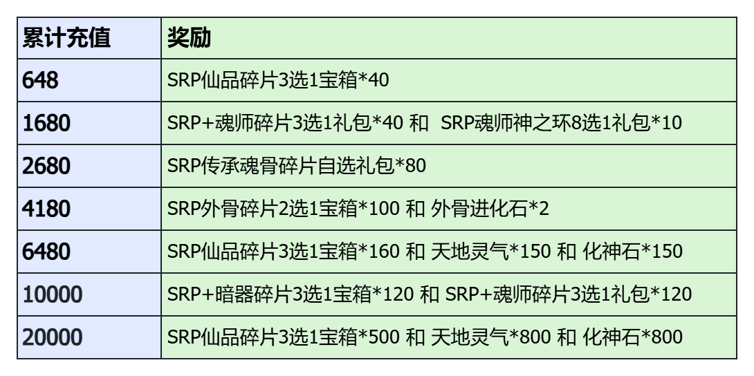 累计充值奖励发放方式:在本次活动结束后的5个工作日内,通过游戏邮件发放到对应满足条件的游戏角色中,请魂师大人留意您的邮箱信息,并及时领取奖励。